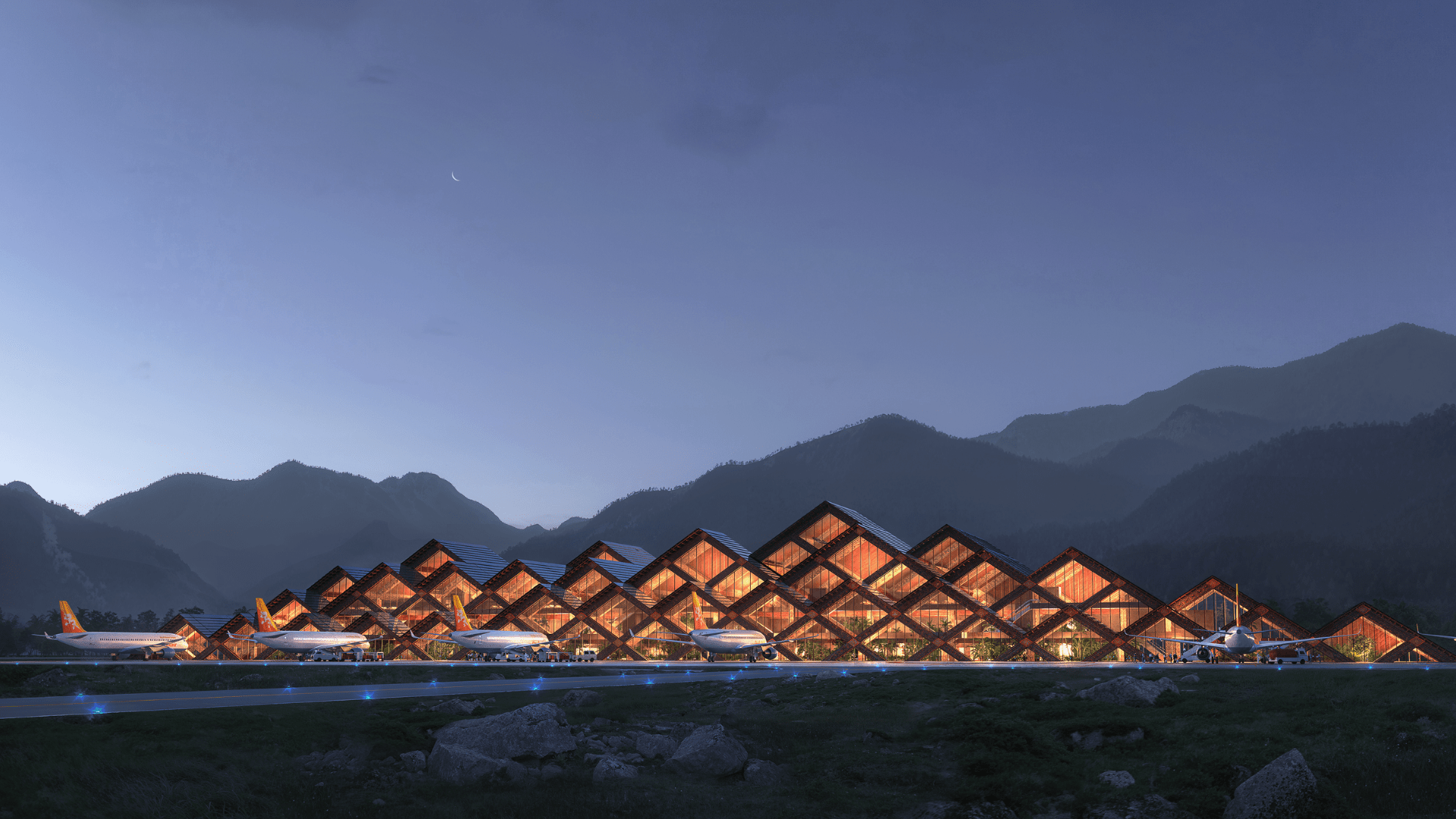 Image: Gelephu International Airport terminal concept design developed by architect Bjarke Ingels Group BIG in collaboration with airport planner and engineer NACO, Netherlands Airport Consultants.